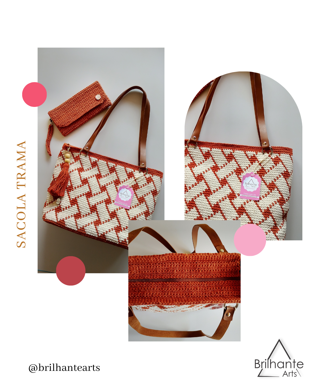 Adicionais: Possui forro interno e um chaveiro em tassel, acompanha uma carteira na cor telha..